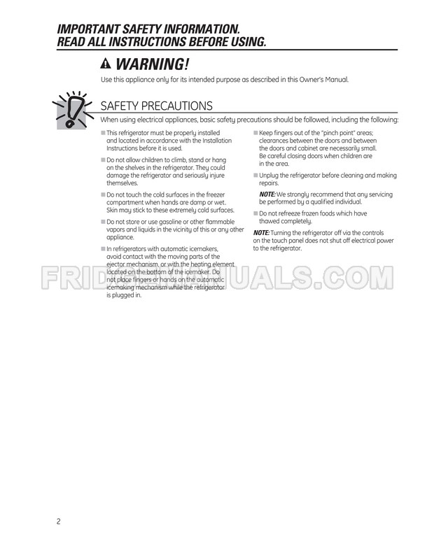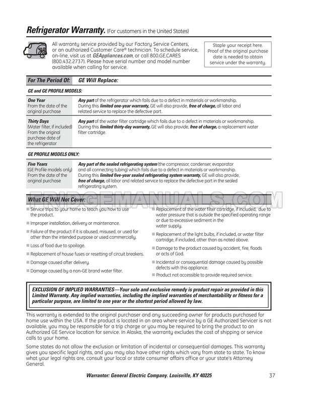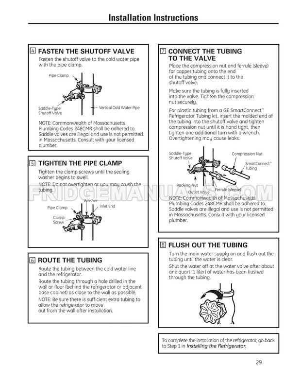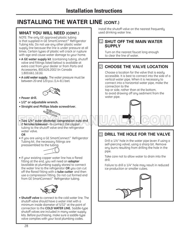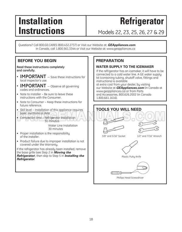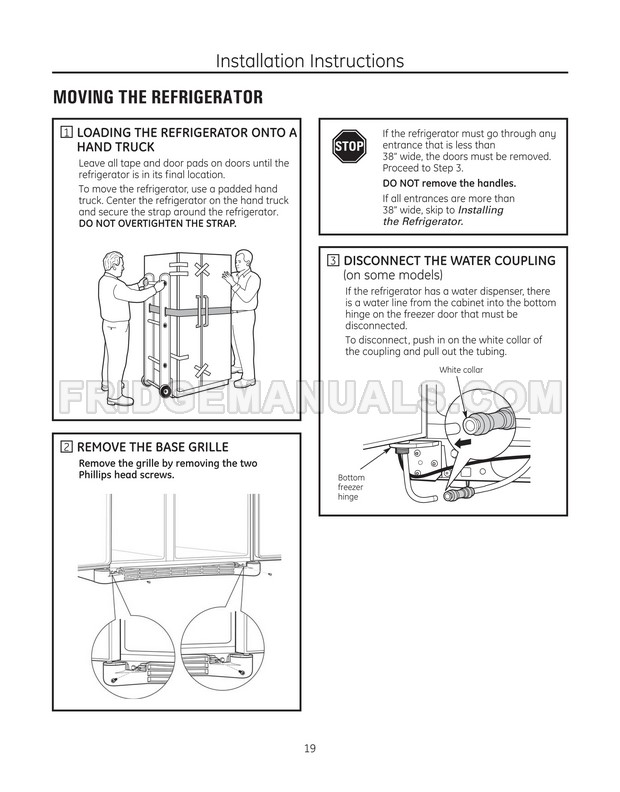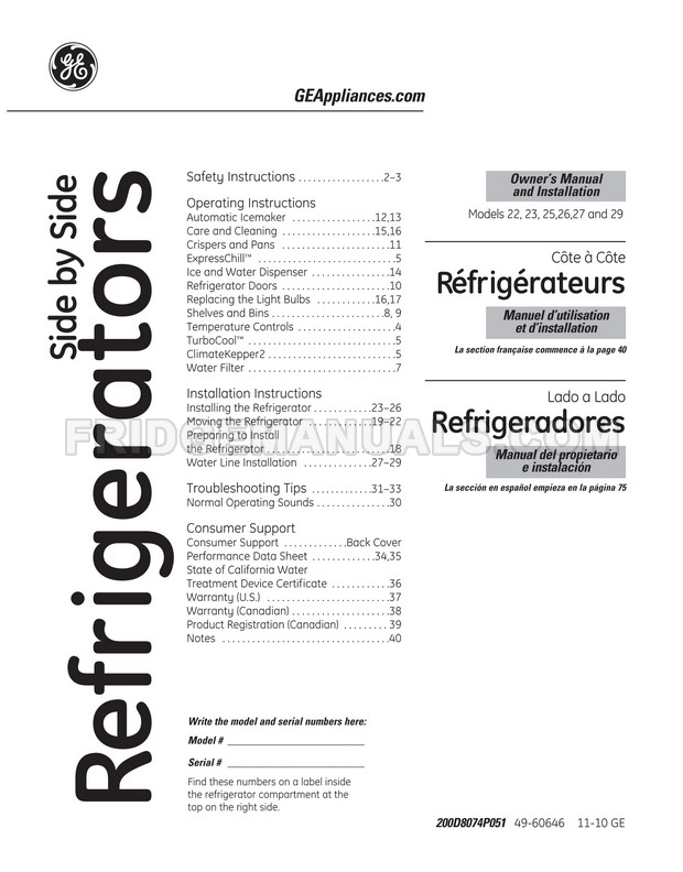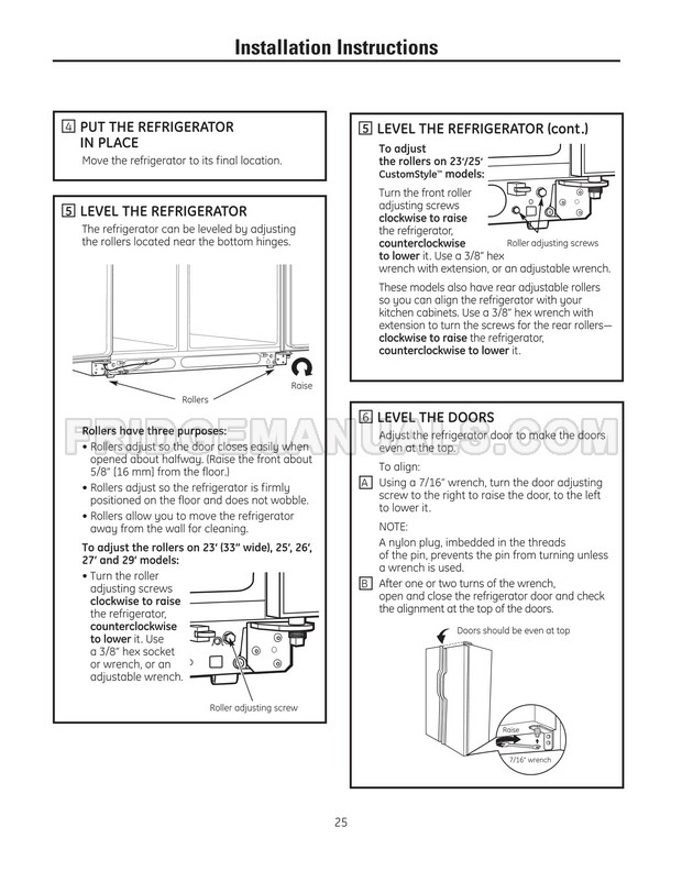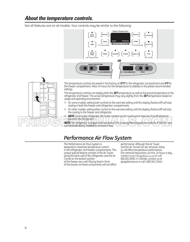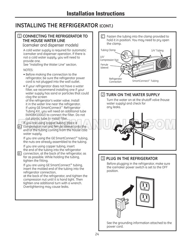 After purchasing a new GE ESS25KSTSS Eterna 25.4 cu. ft. TurboCool side by side refrigerator, follow the steps described in a 41-page owner's manual and installation instructions. This will allow you to set the side by side refrigerator correctly and proceed to setting up the device.