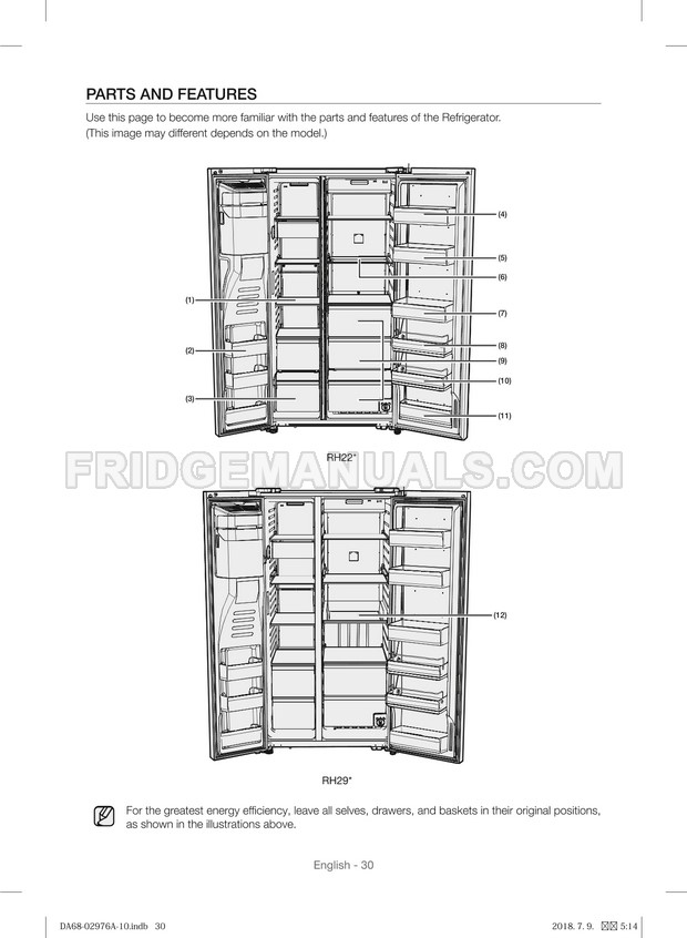Use all the functions and capabilities of (RH29H9000SR/AA) 29 cu. ft. Food ShowCase, Metal Cooling side by side refrigerator for the correct operation of the device, organization and long-term storage of products in suitable conditions. Carefully read user manual in English, which contains a 48 pages of useful information.